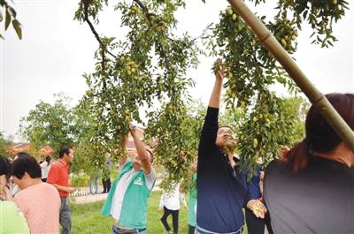 在好想你科技示范園中,紅棗滿枝頭,猶如滿天星。更神奇的是,看似一樣的棗樹,卻結出了不同形態的棗子:辣椒棗、磨盤棗、馬棗、狗頭棗、大白鈴、胎里紅、七月鮮、茶壺棗、梨棗……導游稱,這里是紅棗的“百果園”,“辣椒棗形似辣椒,脆甜多汁,非常適合鮮食。灰棗猶如一顆 紅瑪瑙 ,肉厚核小味甜,可鮮食、可制干。雞心棗個頭雖小,皮薄、質細、味甜,營養豐富,是藥用珍品。”